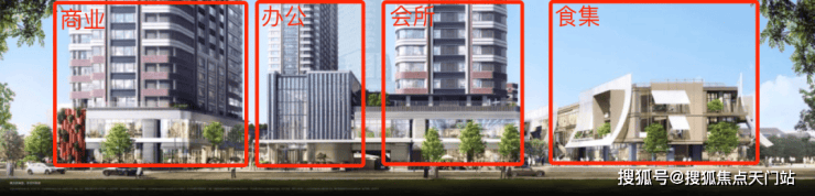 它具体包含了哪些内容?一句话概括来讲:圆弧状的办公塔楼+中部住宅+低区的商业街区。