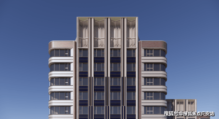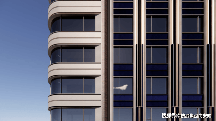 采用大量弧线工艺,包括转角玻璃阳台、弧形铝板、墙面线条和大门线条等,致敬了邬达克装饰艺术派的设计美学。