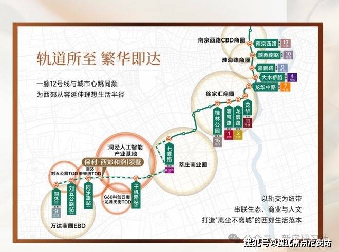 项目近邻12号线同乐路站(在建),一脉徐家汇、淮海路、南京西路等核心CBD,一线速达七宝、莘庄等城市副中心,未来近享双轨,极速出行。配享生态科技城TOD约11万方云廊天街,组团洞泾未来湾TOD(规划)、刘五公路TOD(规划)3大TOD势能联动,咫尺松江万达广场、松江印象城、同乐生活广场等醇熟商圈,拥享城市“中心级”商业旗舰。