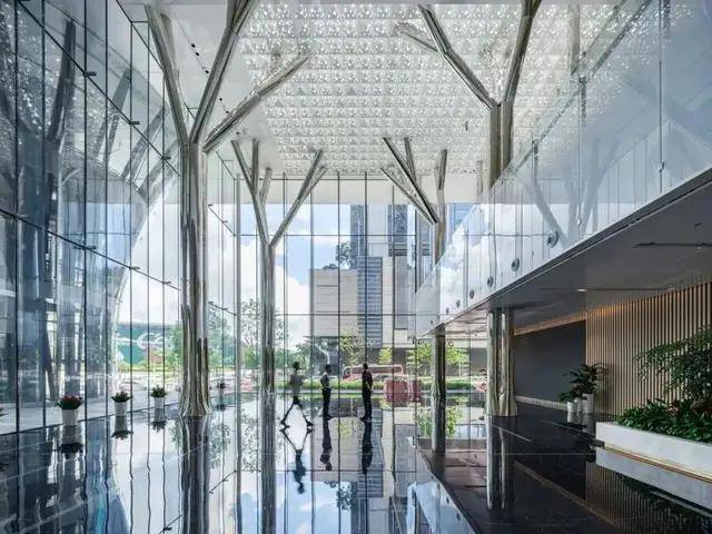 幕墙采用几字形锯齿单元,不仅带来错落有致的视觉韵律,还巧妙实现了自然通风,兼顾美观与功能。