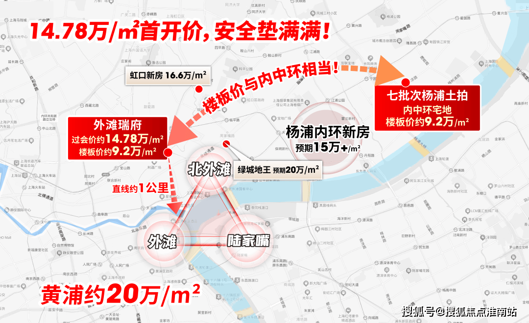 华润外滩瑞府售楼处电话☎: 值得关注的是,上海七批次土拍中,杨浦内中环宅地的楼板价已达约9.2万/㎡——这一价格,与外滩瑞府楼板价相当!