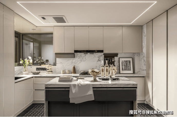 华润外滩瑞府售楼处电话☎: 超大尺度的中西岛台 ,既符合中式烹饪的实用逻辑(预留足够操作台面),又能承载西式社交(朋友小聚时在岛台品酒聊天),让厨房从“单一做饭空间”变成“生活场景发生器”。