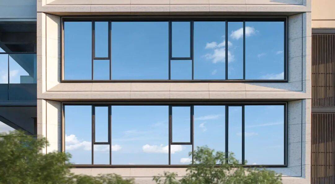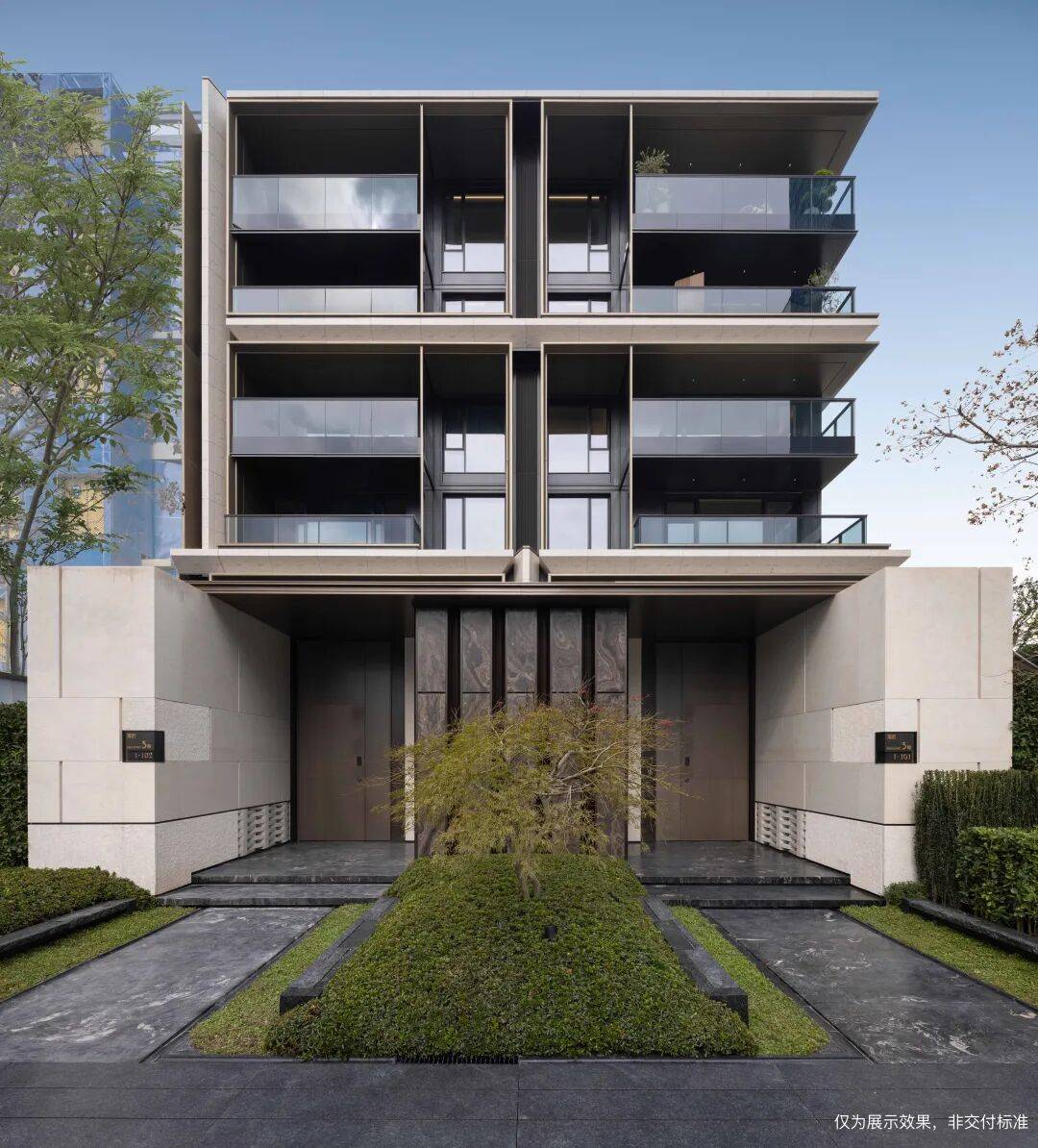 【老钱美学】其次是建筑采用经典的三段式立面,集合仿石铝板、三玻两腔LOW-E玻璃和香槟色铝板线条,形成方正有序的