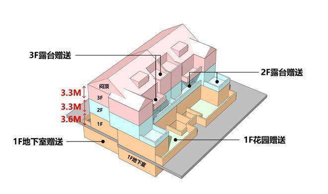 2、从内部空间体系来看,地上三层,层高分别是3.6米、3.3米和3.3米;每个单元一梯两户,每户均拥有类独立电梯厅;一楼带地下室及庭院,并通过创新退台式设计为二楼和三楼打造私家空中花园,形成户户有花园的墅居生活方式。