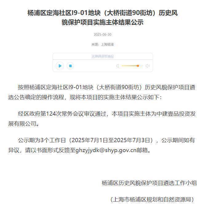前段时间,杨浦定海社区I9-01地块(大桥街道90街坊)历史风貌保护项目遴选结果公示: