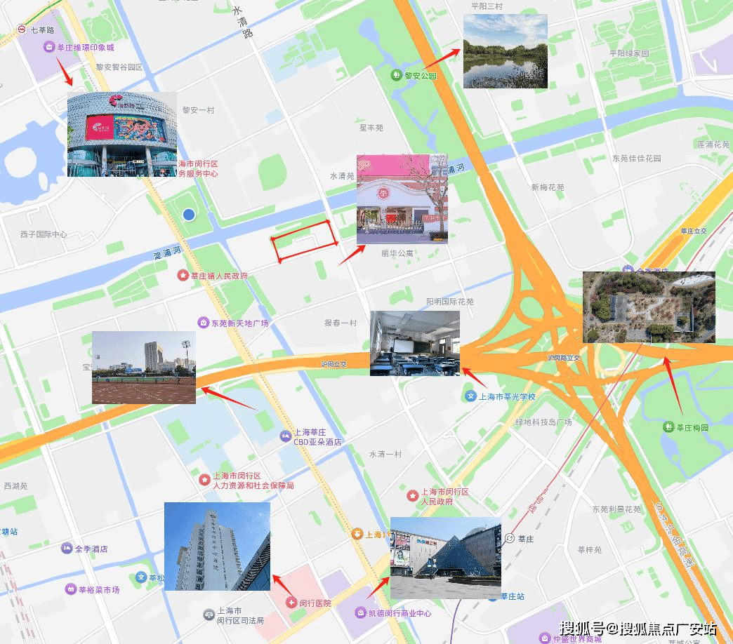 生态休闲:项目周边有黎安公园、淀浦河绿廊、莘庄梅园、母亲林、莘庄公园、莘城中央公园等众多大型公共空间。这些绿地和公园为居民提供了休闲娱乐的好去处,还提升了区域的生态环境质量。