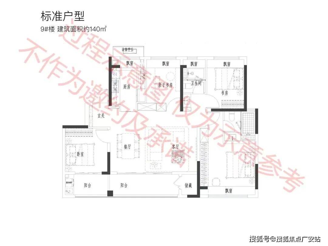 建面约140㎡4房,一梯一户,独立玄关;四开间朝南,大横厅+南向双阳台设计;U型厨房附赠飘窗,提高实用面积;该户型同样也是全卧飘窗。