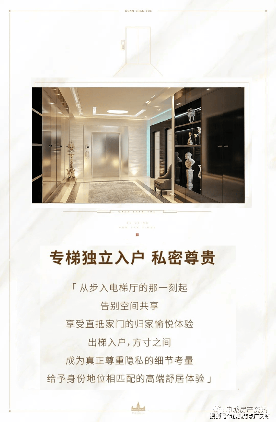 从步入电梯厅的那一刻起,告别空间共享,享受归家愉快体验,成为真正尊重隐私的细节考量,礼序独立电梯,一梯一户专属私家入户,承载门第风范